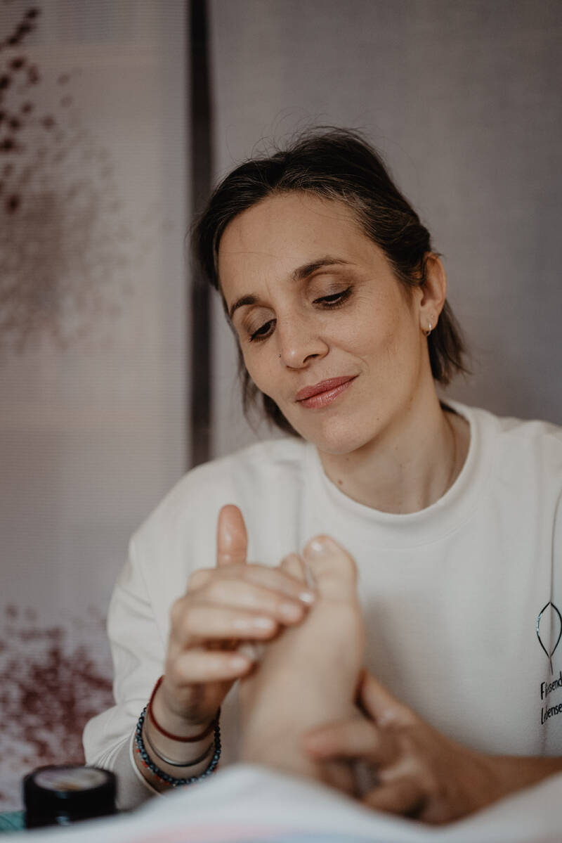 Unsere Füße werden tagtäglich strapaziert. Auf den Fußsohlen finden wir Kontaktpunkte zu unseren Organen und vielen Punkten, die im direkten Kontakt mit unserem Körperinneren stehen. Durch gezielte Berührungen lassen sich Blockaden lösen und die Energie kann fließen. Auch sehr gut mit der AMM kombinierbar.